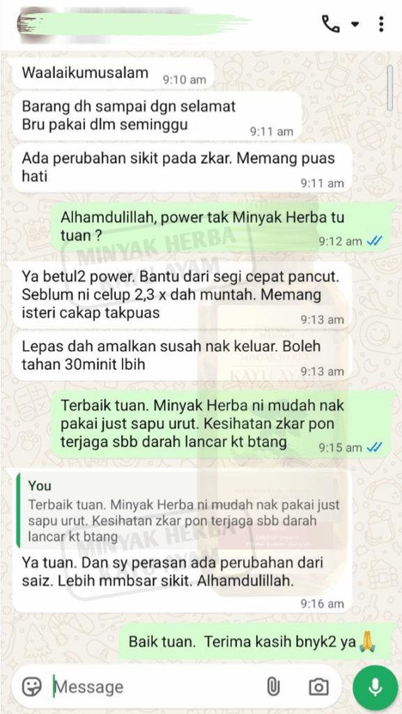 👉 Minyak tradisional lelaki diformulasikan dengan 7 herba warisan Melayu & Cina, khusus membantu masalah kelakian seperti zakar lembik, mati pucuk, cepat pancut dan kurang tenaga.