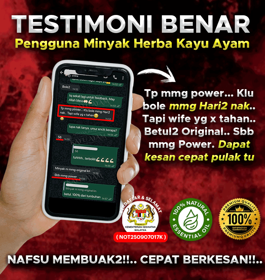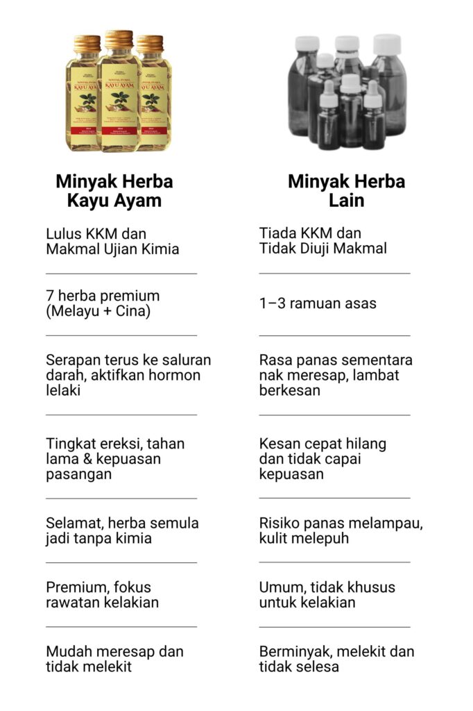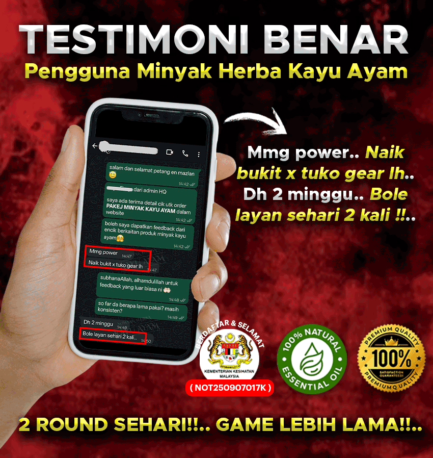 Minyak Herba Kayu Ayam Terbukti Bantu Kekal Keras Lebih Lama Secara Semula Jadi, Prestasi Lebih Mantap dan Kepuasan Rumah Tangga Lebih Harmoni.